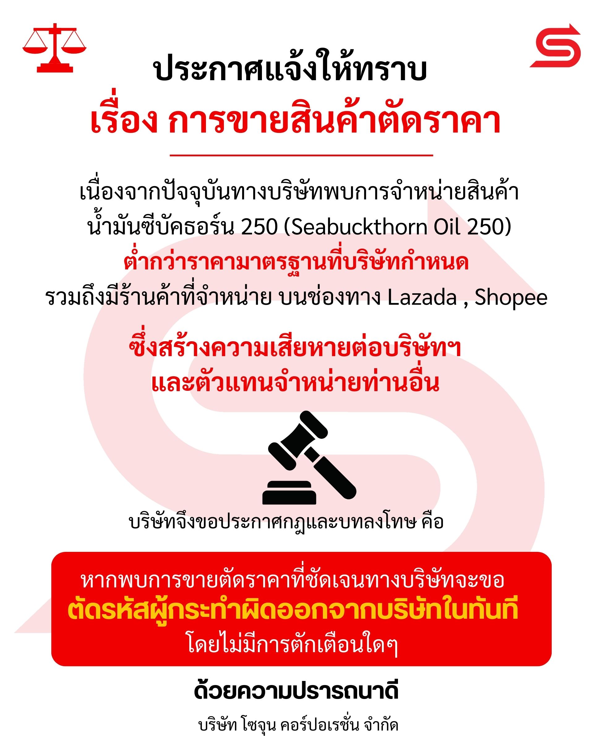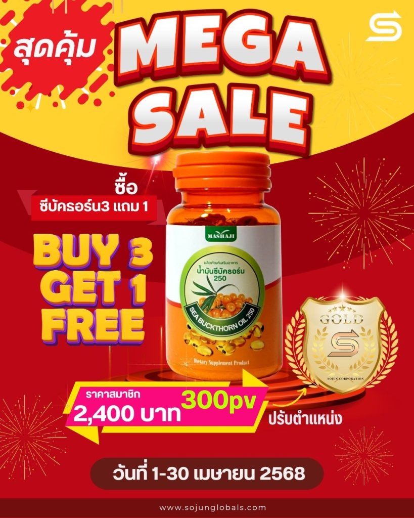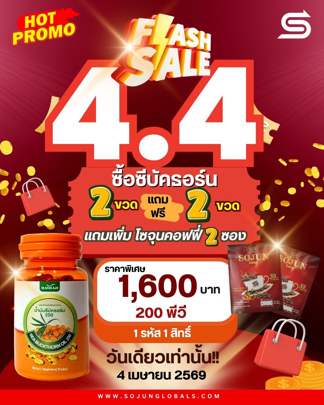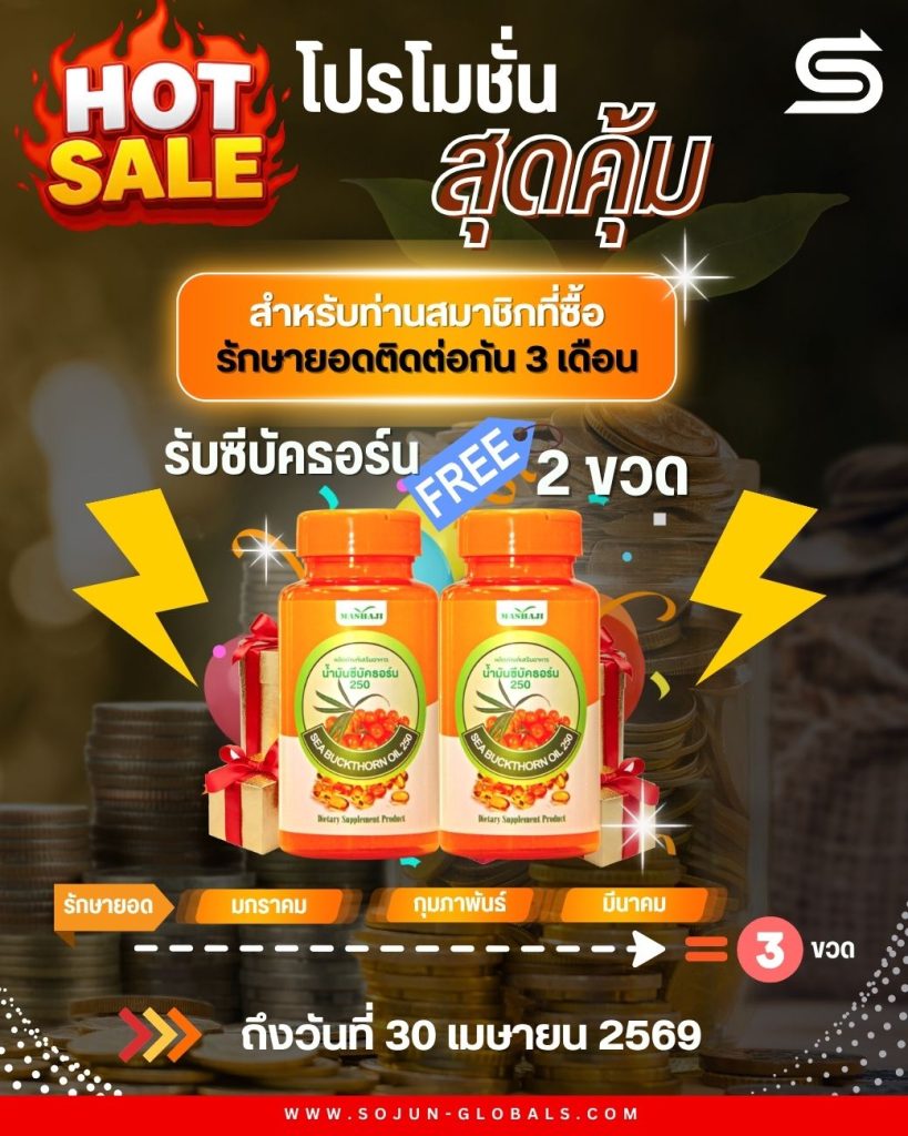 Slide 1BEST SELLING PRODUCTSeabuckthorn Oil 250น้ำมันซีบัคธอร์น 250 ผลิตภัณฑ์เสริมอาหาร ซีบัคธอร์น (Sea Buckthorn) คือผลไม้สีส้มทองจากต้นไม้ในพื้นที่ภูเขาสูงและอากาศหนาวจัด เช่น ทิเบต มองโกเลีย และยุโรปตะวันออก ผลของมันถูกยกให้เป็น “ทองคำแห่งธรรมชาติ” เพราะอุดมไปด้วยวิตามิน สารต้านอนุมูลอิสระ และกรดไขมันจำเป็นหลากหลายชนิด Buy NowSlide 2LATEST PRODUCTSojun Seabuckthorn Serumผลิตภัณฑ์เครื่องสำอางสำหรับผิวหน้าและลำคอช่วยบำรุงผิวอย่างล้ำลึกให้ผิวแลดูกระชับ ช่วยให้ริ้วรอยและดูตื้นขึ้น ช่วยลดเลือนความหมองคล้ำ จุดด่างดำให้แลดูจางลง ช่วยลดสิว และช่วยให้ผิวหน้ากระจ่างใส ปรับโทนสีผิวให้ดูสม่ำเสมอ พร้อมบำรุงให้ผิวชุ่มชื้นแลดูอ่อนเยาว์ Buy NowSlide 3Organic ProductVenus Oilผลิตภัณฑ์เสริมอาหาร วีนัส ออยล์ บำรุงสายตา, ช่วยป้องกันจอประสาทตาเสื่อมและลดความเสี่ยงของโรคต้อกระจก, ดูแลสิว, ป้องกันริ้วรอย, ผม ผิว และเล็บ, ช่วยเสริมสร้างระบบภูมิคุ้มกัน Buy NowSlide 3Premium ProductSOJUN COFFEEกาแฟปรุงสำเร็จชนิดผง ( Instant Coffee Mixed Powder ) ตรา โซจุน คอฟฟี่ หอม...รสเข้มข้น...กลมกล่อม ส่วนประกอบ 39 ชนิด ผสมซีบัคธอร์น ส่วนครีมเทียมนํ้ามันมะพร้าว ผงกาแฟอะราบีกา ถั่งเชา คอลลาเจนไตรเป็ปไทด์ อินูลิน แอล-คาร์นิทีน แอล-ทารเ์ทรต โคเอนไซม์ Q10 ผงลูกพรุน เป็นต้น Buy Now ซื้อซีบัคธอร์น 2 ขวด แถมฟรี 2 ขวด ราคาพิเศษ 1600 บาท 200 พีวีวันเดียวเท่านั้น!! Buy Now Monthly Promotion โปรโมชั่นประจำเดือน Buy Now Buy Now Buy Now Activity ผลิตภัณฑ์สุขภาพ Seabuckthorn Oil 250 น้ำมันซีบัคธอร์น 250 ผลิตภัณฑ์เสริมอาหารบรรเทาอาการเจ็บคอหลอดลมอักเสบเนื่องจากอาการไอเชื้อไวรัสลงปอดอุดมด้วย : วิตามิน C โอเมก้า สารฟลาโวนอยด์ และคิวเลอซิติน อ่านเพิ่ม Seabuckthorn Serum ซีบัคธอร์นเซรั่มสำหรับผิวหน้า และ ลำคอทำให้ผิวชุ่มชื้น ไม่แห้งกร้านเปล่งปลั่ง อิ่มฟูดูอ่อนกว่าวัยลดริ้วรอยจุดด่างดำลดความหมองคล้ำ อ่านเพิ่ม Venus Oil ซีบัคธอร์น วีนัสออยล์บำรุงสายตาช่วยลดการอักเสบดวงตาลดอาการตาแห้งอาการน้ำตาไหลตาพร่ามัวดูแลสุขภาพ บรรจุ 60 เม็ด อ่านเพิ่ม ประกาศบริษัท we all love SEABUCKTHORN Look deep into nature, and you willunderstand everything better. Get Started Customers Reviews Rated 5 out of 5 รับประทานง่ายมาก มีประโยชน์ต่อร่างกายเยอะ เพื่อนแนะนำมา ก็บอกต่อเพื่อนอีกหลายคน ไม่มีใครผิดหวัง ดวงดาว หิรัญกาญจน์ Seabuckthorn Magic Fruitอุดมไปด้วยวิตามิน แร่ธาตุ ที่ร่างกายต้องการจำนวนมาก รวมทั้งกรดกรดอมีโน หลายชนิด ที่ร่างกายต้องการ กรดไขมันไม่อิ่มตัว โอเมก้า 3,6,7,9 สารต้านอนุมูลอิสระ SOD Shop Now Rated 5 out of 5 เป็นโรคสะเก็ดเงิน ที่ผิวหนัง รุ่นพี่แนะนำให้ทานดู สิบกว่าวันเห็นชัดเลยว่า ผิวเรียบเนียนขึ้น ชุ่มชื้น แฟนยังเอาไปทา แก้ส้นเท้าแตก ได้ผลเช่นกัน ไม่น่าเชื่อ ทวีศักดิ์ บุญเสริมมาก COFFEE กา